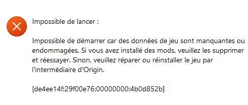 Bonsoir je viens d'installer les sims 4 et quand je lance ça me met cette erreur (je vous la met en photo) et j'ai regarde un tuto j'ai essayer de vider le cache et de faire réparer sur le jeu mais ça ne fonctionne absolument pas pouvez-vous m'aider merci