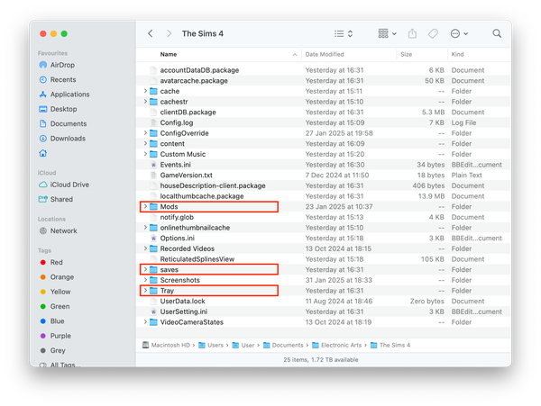 Mods - if you play a modded game this is where your CC and Mods are saved and most likely the culprit of a broken game, especially after a game update