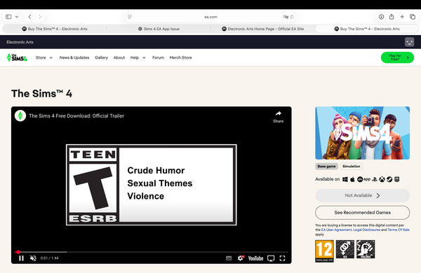 Noufrashid03Newcomer5 hours agothe sims 4 not availablethe sims 4 says its not available on both the ea app and the website, I have been trying to download it for months and still the same issue, any recommendation? + I have mac