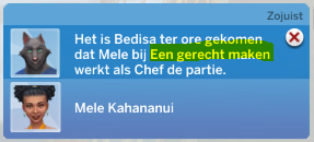 Mijn sim was aan het praten met een townie over de carriere. Hierin vertelde de andere sim te werken bij "Een gerecht maken".