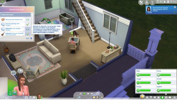 Ben sinds vandaag weer voor het eerst aan het sims spelen en in het Nederlands wederom (gelukkig) en nu kwam ik een fout tegen bij 'challenge' van Farrah Nouvel, zij wil iemand leren kennen en dan krijg je te zien dat je dit moet zoeken onder vriendelijk en dan onder voorkeur of afkeur, nu kennen we die niet in het Nederlands,we kennen hem echter onder over koetjes en kalfjes praten: Zie screenshots.