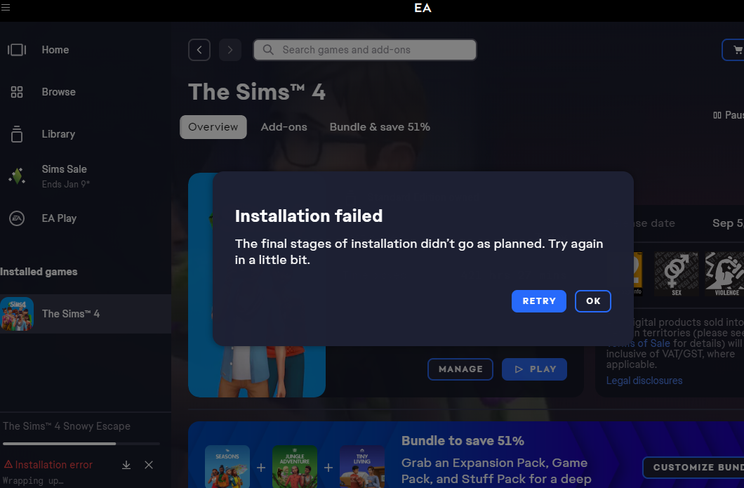 Dus ik probeer mijn pakketen te dowloaden maar mijn EA zegt dat er een error is .