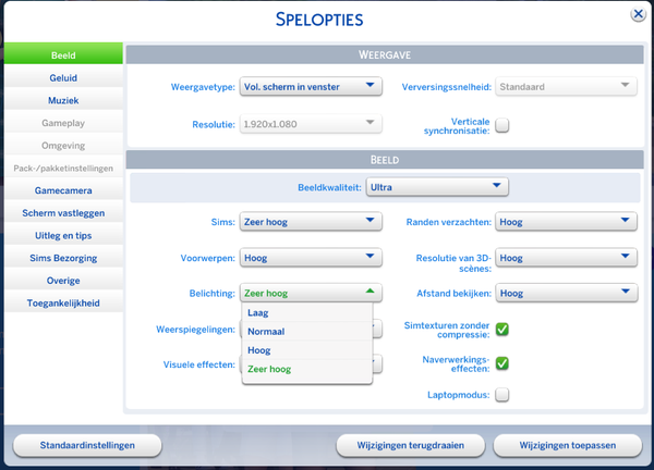 Dit zijn mijn instellingen. Ja ik heb mods geinstalleerd en aangepaste content