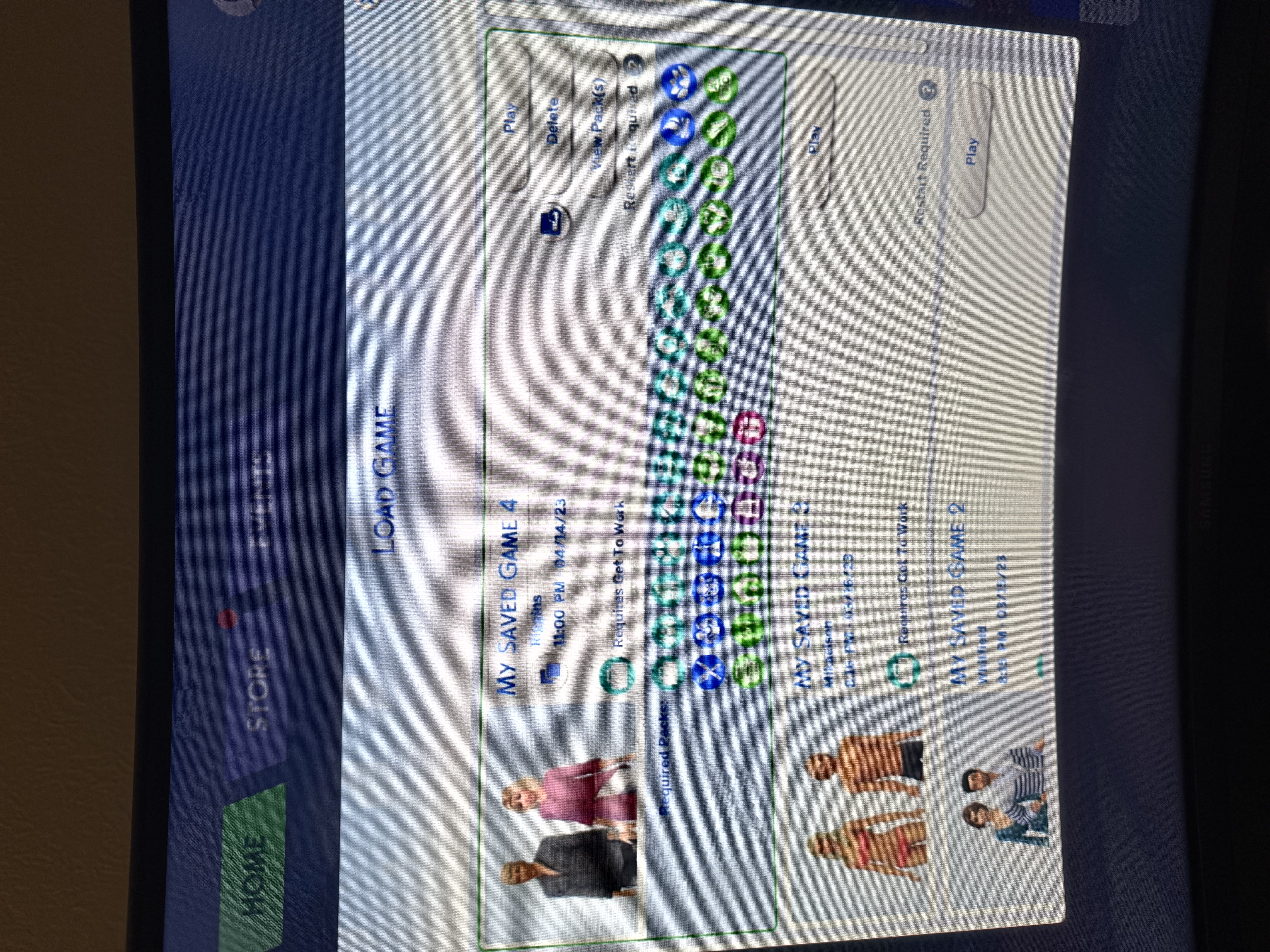 On my last saved game, dated 4/14/23, ("MY SAVED GAME 4", Riggins family, 11:00 pm on 4/14/23) you can see how many of the packs I used just in that game play. I really need help retrieving all of my Sims 4 content. It cost me way too much money to lose. Plus I have been playing sims for decades.