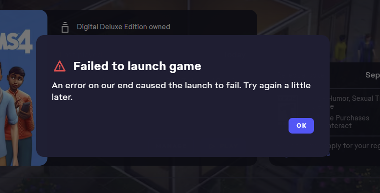 [CURRENT ISSUE] Sims 4 Failed to Launch Game | EA Forums - 12561664
