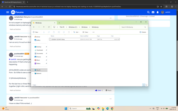 Jerk00 Are you getting BlueScreens when Sims 4 crashes? I ask because your dxdiag is full of them, but I can't tell from your description if that's what you're seeing. The blue screen itself sometimes disappears too quickly to notice, but these are definitely happening.