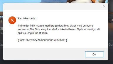 In english: "The contents of your user data folder were created with a newer version of The Sims 4 and therefore cannot be loaded. Please update this game via Origin in order to play."