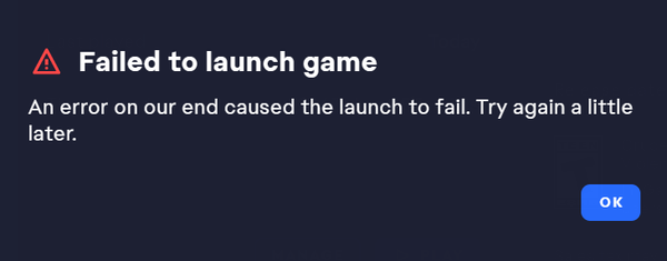 An error on our end caused the launch to fail. Try again a little later.