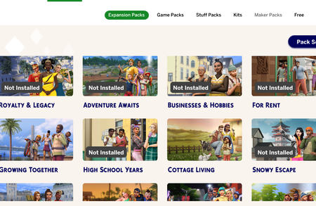 I play on Steam and the accounts are linked. I have all but three of the expansion packs. I can only access five of the packs I own. It is the same for the other DLC I own. I have trie...
