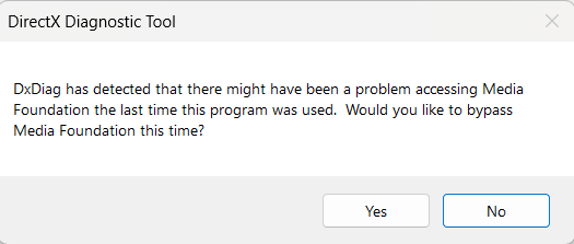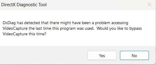 ourneoneon Just bypass VideoCapture and Media Foundation if you have to. Most of the time, these parts of the dxdiag aren't relevant anyway.