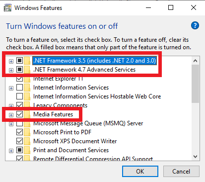 After the restart, enable ".NetFramwork 3.5" > wait until the installation is done > restart the Computer > Test.