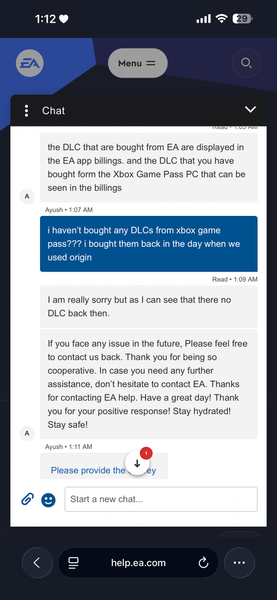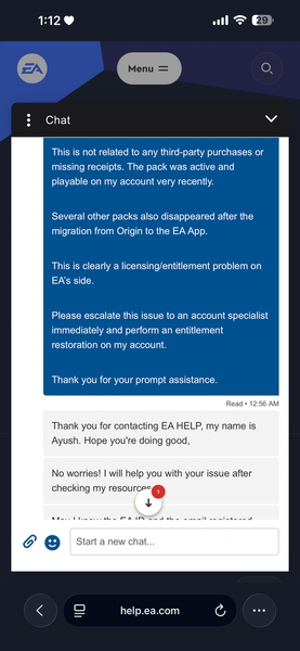 Dear EA Support,