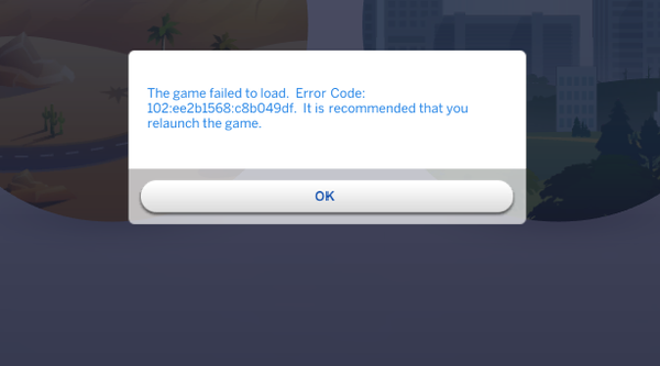 What happens when the bug occurs? Error 102 appears when I try to play a household