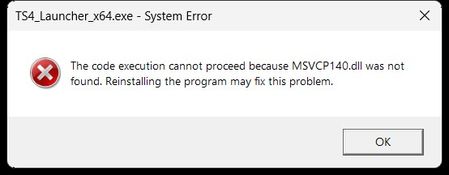 Pristeenwaters That file is a component of the 2015 and newer VC++ runtimes, which Sims 4 uses. So please uninstall your current versions, if you have them, and install fresh copies. Hit Windows key-i, select Apps, scroll down to the Microsoft Visual C++ Redistributables, click on any version from 2015 or later, and select Uninstall. Don't touch the older versions. You can download the newest runtimes directly from Microsoft: