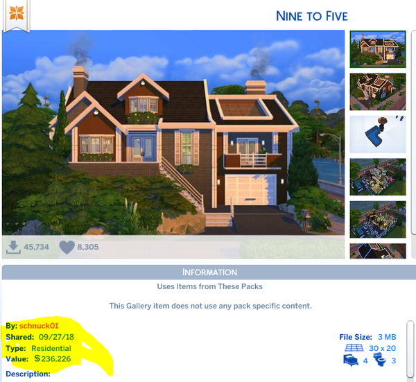 I have been noticing a problem with re-uploads in the gallery lately, it's bad enough that stuff can be re-uploaded (creators should really have an option to disallow this) but the 'original by' is somehow being 'bypassed' and this is happening more & more frequently this is my build: this my build re-uploaded w/o 'original by' It's EXACTLY the same, I downloaded and checked ( even the price is all glitched out but shows correctly once placed)I have seen this probably now 4-5 times with this one single house. I also have seen other houses w/o 'original by' This house was built by Leahlaz - no original by credit:So what's going on here?