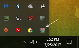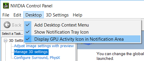 Bottom-right corner windows desktop display tray looks like this: ^ When you have to game running, look for the rainbow icon. Left-click to show all applications using the GPU.
