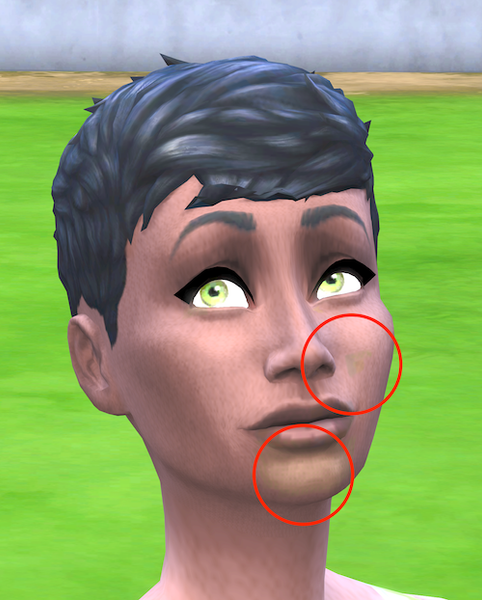 - crinrict6 years agoHero+@SimisterTV Looks a bit like this: https://answers.ea.com/t5/Technical-Issues-PC/White-Rash-Like-Patches-on-Sim-s-Skin/m-p/8758196