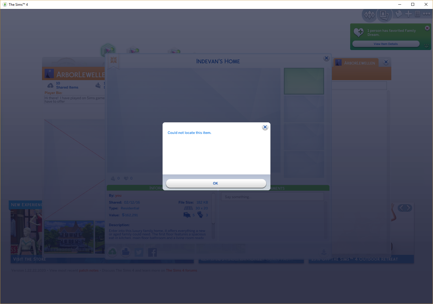 I have been having an issue where in my profile one of the lot pictures will have a red X and whenever I try to click on it I will get a window pop up that says "Could not locate this item."