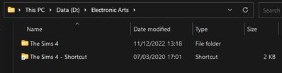 If the command to create a symlink doesn't work, try writing out the exact file path rather than %userprofile% . You can find the full file path by right-clicking the relevant folder (Documents or Electronic Arts, depending on what you're moving to the secondary drive) and selecting Properties > General, then looking under Location.