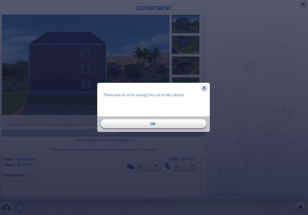 "there was an error saving this lot to library"