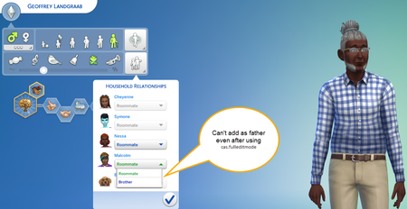 But I did figure out the issue I was having. Malcolm still has parents listed, although they are blank. So I just added Geoffrey as Malcolm's wife Nessa's father to try to rebuild my generational family that way.