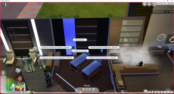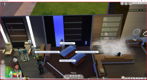 Będąc w spa, po kliknięciu na wybranego masażystę nie ma żadnej opcji o poproszenie o dany rodzaj masażu. Dopiero jak zaproszę masażystę do swojego domu to może zrobić masaż przy stole, a masażyści w spa nie mają takich interakcji, tylko inne interakcje typowe dla innych simów (przyjazne, zabawne itp.). - Dodatek Dzień w spa