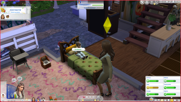 i to nie przez to że dzieciak leży w kołysce tylko cały czas tak jest. Jedyny sposób aby coś z nim zrobić to klikać na możliwe obiekty tak jak na kołyskę aby położyć dzieciaka. Dopiero od nie dawna tak mam i nie wiem jak to naprawić. I to nie jest tylko w tej rodzinie, w każdej jest ten sam problem.
