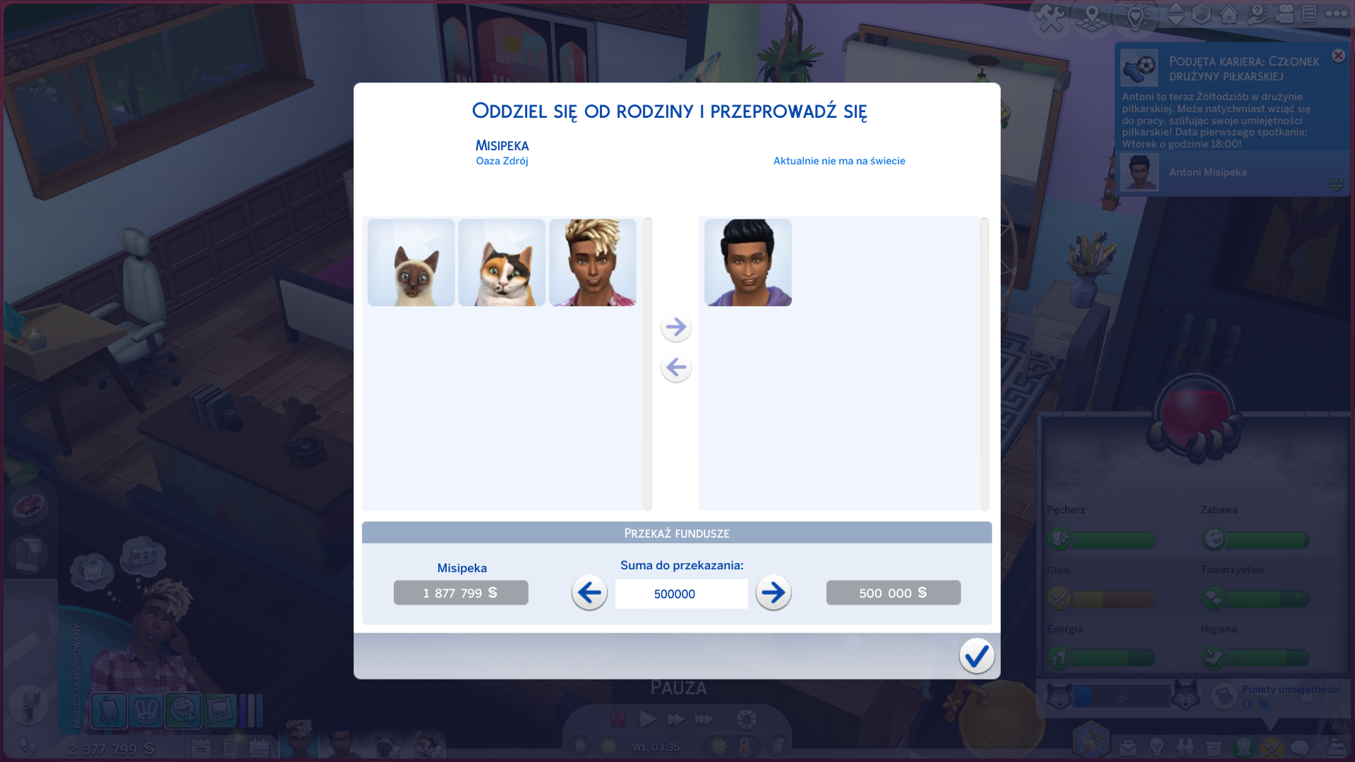 brak opcji "oddziel się od rodziny i przeprowadź"