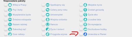 Mam taki problem ze w "wybor pakietow" w kolejnosci po dodatku "przygoda wzywa" powinien mi sie wyswietlac najnowszy dodatek. Nawet jesli go nie kupilam powinien się wyświetlać na blado (nie wiem jak...