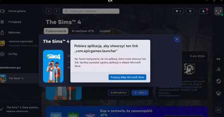 Gdy chce włączyć grę przez platformę EA pokazuje mi komunikat, że nie ma aplikacji abym mogła ją uruchomić. Chodzi o Epic Game, nie mam jej ani żadnego powiązanego konta. Problem jest już bardzo dług...