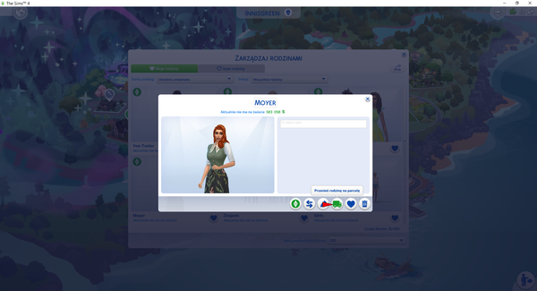 Wchodzę do skrzyni rodzin i wybieram Simkę, którą przed chwilą eksmitowałam: