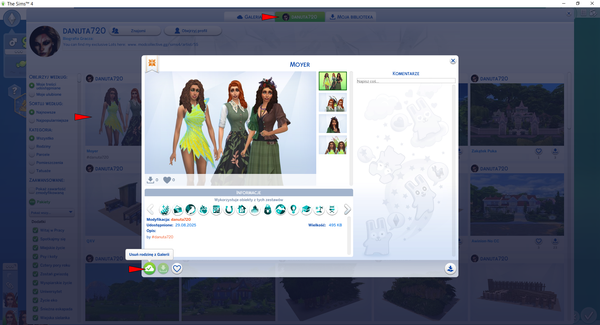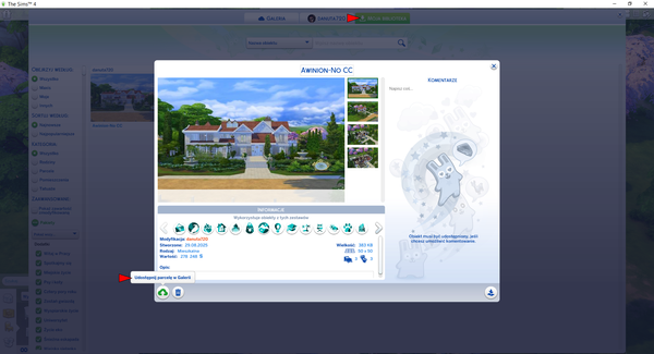 Wejdź do Biblioteki i spróbuj wysłać Simy/domy do galerii.