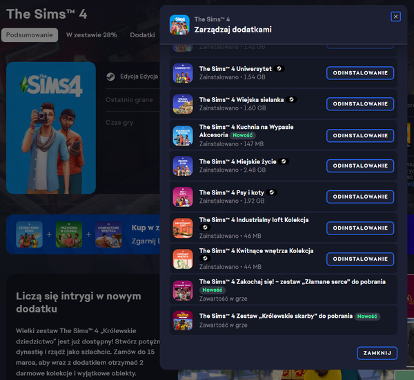 Sims 4 - brak możliwości pobrania dodatków