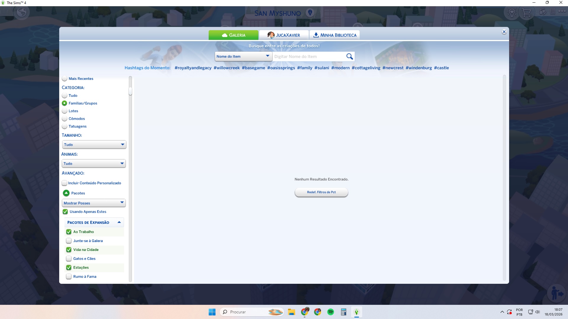 Não é possível filtrar pelos pacotes q tenho... Usando a opção "mostrar posses" diz não haver nenhum conteúdo na galeria... não tem nenhum? sério que não é bug?