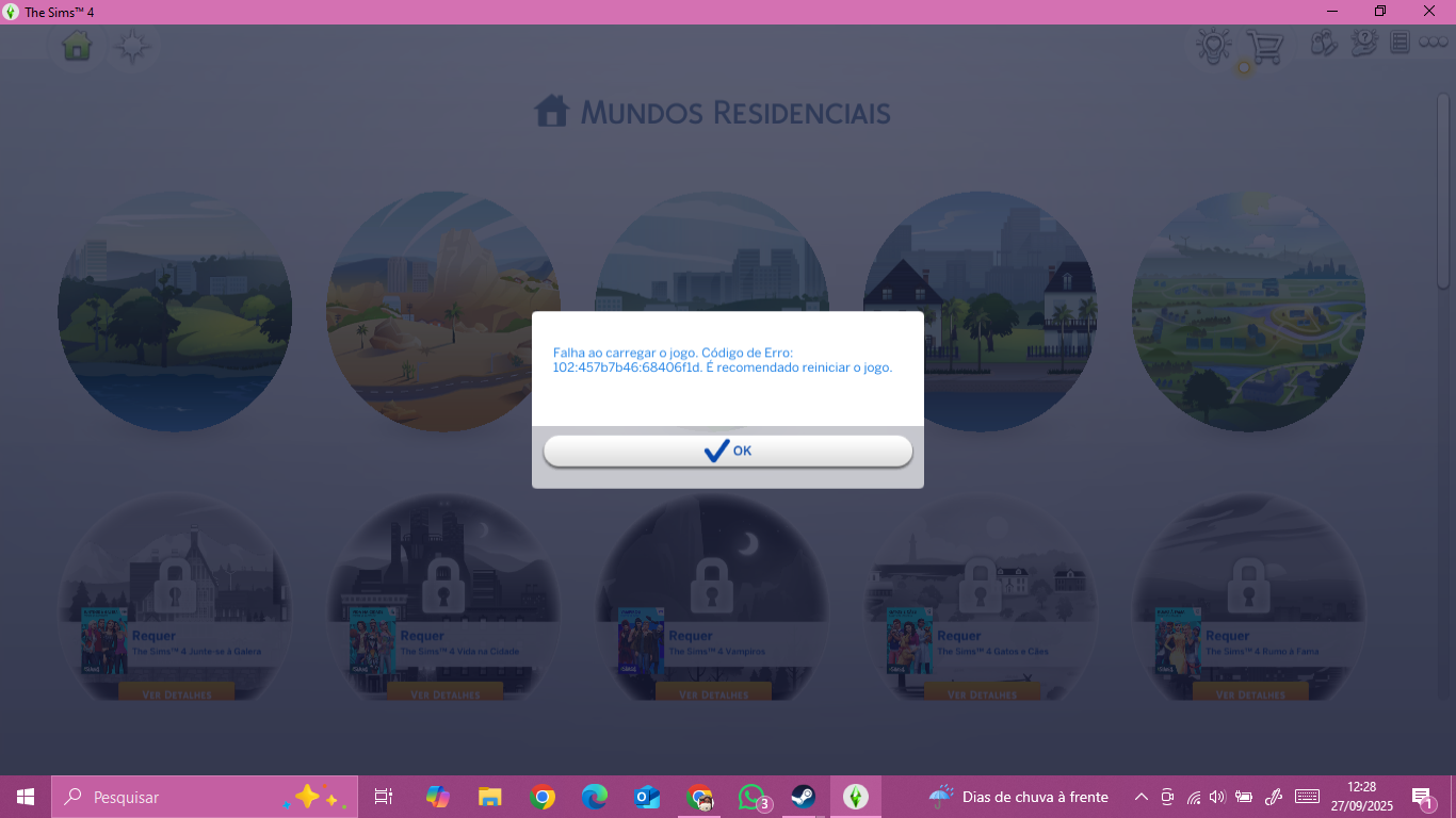Depois da atualização de agosto, meu jogo simplesmente dá erro na hora de entrar no mundo. Consigo criar familias novas, mas não consigo jogar de jeito nenhum, já atualizei tudo o que podia, desinstalei e instalei, mas, pelo visto, terei de perder tudo o que já construí no jogo, e eu estou muito chateada com tudo isso.