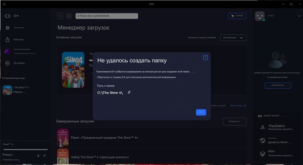 Не получается обновить The Sims 4