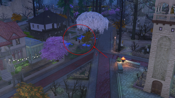 На скриншоте показано место где собираются все симы что-бы поиграть грязью или просто стоят без действий. У Духовного дерева кликаю на зеленую лужу "Поиграть в кислотной грязи" они все разворачиваются и бегут на другой конец карты играть в грязи хотя лужи с грязью там нет (Место куда бегут на скриншоте) Эта ошибка очень давняя думала с патчем уйдет, но стала еще токсичнее. Мы живем рядом с этим местом, симы дома бросают все дела и бегут к этой луже играть. И этому нет конца, пока не запру калитку.