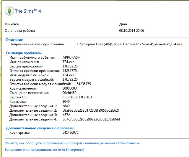 Здравствуйте! Вчера купила и установила игру Sims 4, но она не работает. Антивирус отключала, игру переустанавливала, драйвера видеокарты обновила, путь к игре полностью на английском языке. Однако, игра по-прежнему не запускается. Вот скриншоты: 1) http://sd.uploads.ru/Du4Vo.jpg 2) http://sd.uploads.ru/2Bn7t.jpg Прошу вашей помощи!