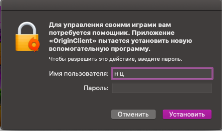 Здравствуйте. У меня не получается установить Origin на Mac. Я не понимаю, какой пароль от меня требуют для установки. Никаких сообщений с паролями на почту мне не приходило, а все остальные варианты я уже перепробовала (вводила пароль от аккаунта Origin и свой apple id пароль).