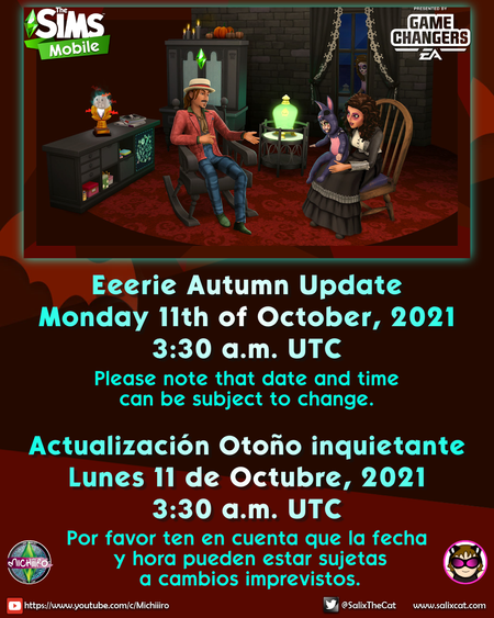 La actualización Otoño Inquietante estará disponible para descargar en las app stores el Lunes 11 de Octubre 2021 a las 3:30 a.m. UTC.