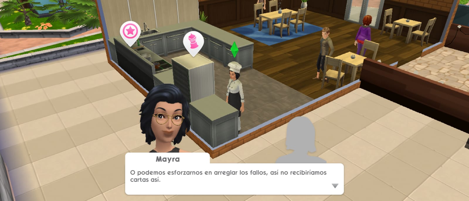 Hola Salix te quería comentar de qué uno de mis amigos se descargó Los Sims Móvil, pero en los trabajos de restaurante y medicina apareció una mujer extraña