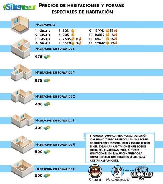 En colaboración con @Phantomlover1717 hemos hecho una lista de precios de las habitaciones y las formas especiales de habitación.