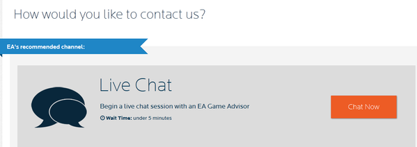Vous aurez ensuite les options de contact disponibles, comme le Chat avec un conseiller, ou pour planifier un rappel s'il est disponible dans votre région. Notez que pour les problèmes de facturation, achat ou de compte, vous devrez choisir une méthode de contact en direct (téléphone ou chat).