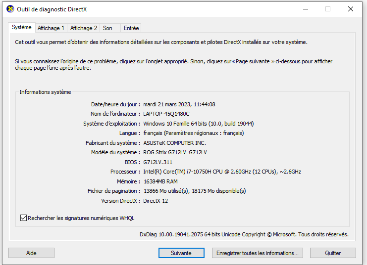 Hum ok. Est-ce que vous pouvez nous envoyer un rapport Dxdiag pour que l'on voit la configuration complète de votre pc ? Ca permettra aussi de voir si il y a des erreurs qui remontent.
