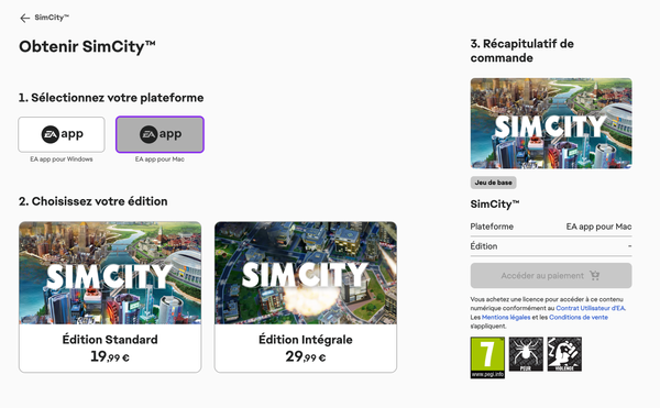 Simcity indisponible macOS et EA app