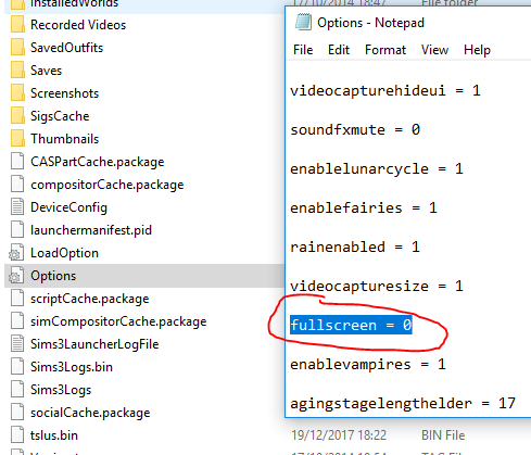 SpoilerDokumenty (%USERPROFILE%\Dokumenty\Electronic Artslub %USERPROFILE%\Moje dokumenty\Electronic Arts) katalog The Sims 3 i plik o nazwie Options.ini >ustawcie fullscreen=0 jak według zrzutu poniżej: