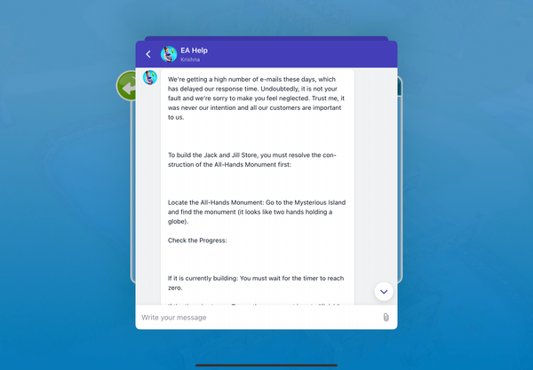 Hey EA! can we please get an update if you guys are aware of the errors since updating the game and are going to let us know if you are going to fix them or are working on them. I’ve used money on this app since 2013, and with all these problems I think I might end my saga to dedicating some of my time to look after my sims. The all hands monument glitch is stoping us from building other buildings and hindering us leveling up. Please can we be told if this is going to be fixed because many of us can’t move on or up in levels without it