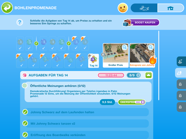 the tasks at Sims Springs „Bohlenpromenade“ and it is the last day but I can‘t do the last task because when I click on the phone there is no task. Can someone help me? I tried it with a teenager and it worked but in the task they say a Sim should do it so I dont unterstand why an adult can‘t do it? I don‘t have 12 Teens??!