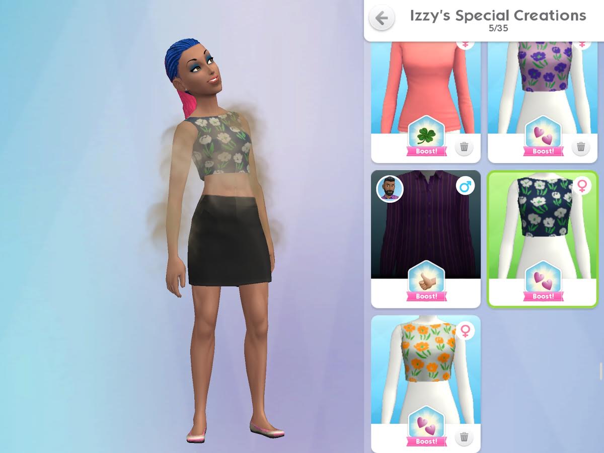 Whenever I put on the floral crop top from Izzy's special creations my sim has brown stuff floating around it. I'm not sure what it is but when I take it off it goes away. I thought it was supposed to be hearts floating around? Is this a bug or something with the gameplay?