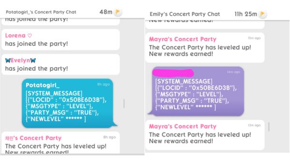 While hosting parties, a lot of players (the hosts), have seen messages on the party chat, apparently written by the guests, with weird codes. They can appear one, or more than one time.